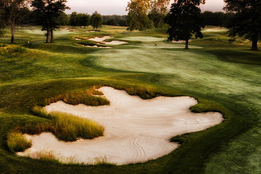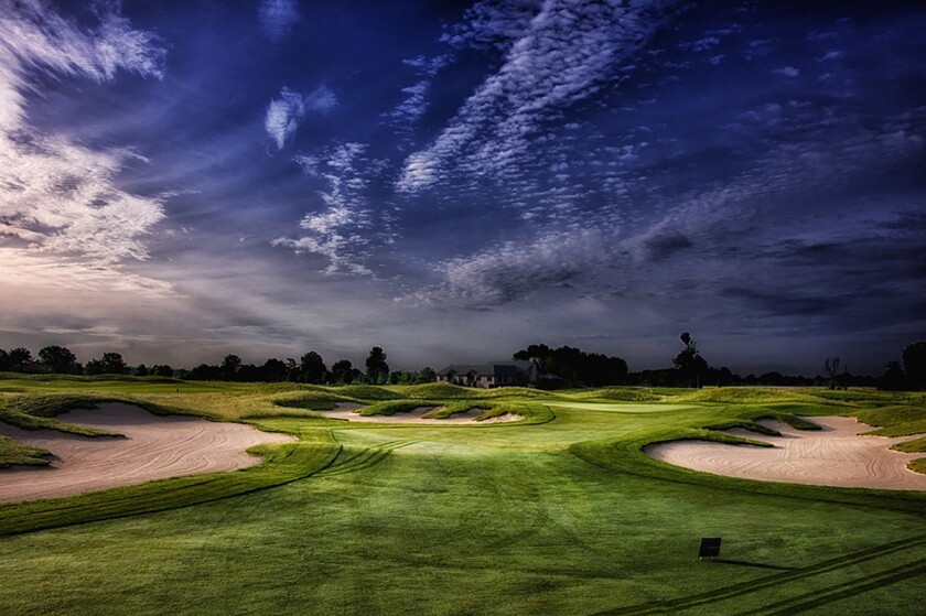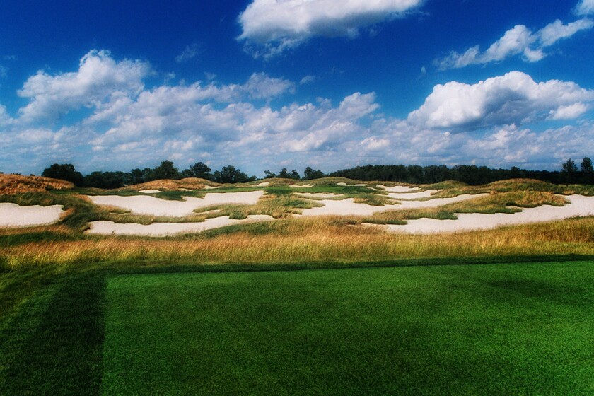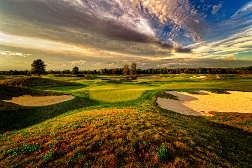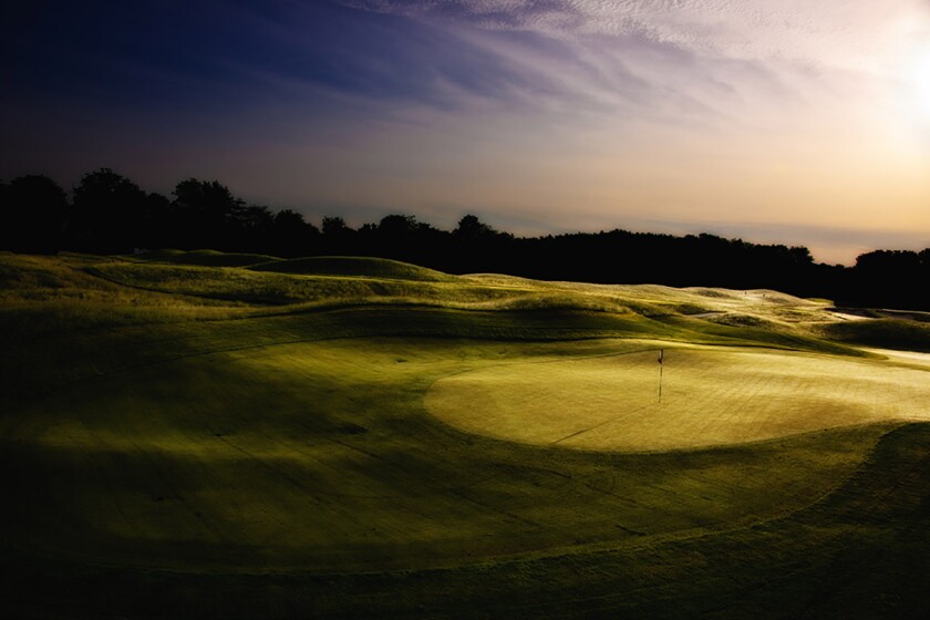 In honor of Redan architecture, the “Impenetrable Fortress” has a tilted green, surrounded by steep bunkers. Long putts are difficult because a ridge runs across its raised, undulating green. This par 3 has more hole-in-ones than any other. But don’t be fooled; the green slopes away from its ridge on both the front and the back.