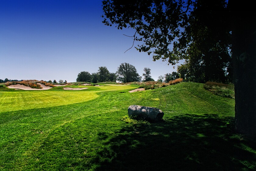 Another player favorite is Eden, named after its lovely, snake-shaped rock wall. This medium-length par 4 appears easy at first glance. But it tests you with trees, fairway bunkering and undulating mounds on the green. The green is protected on the front by the rock wall, and bunkers behind the pin will catch any shots hit too strong.